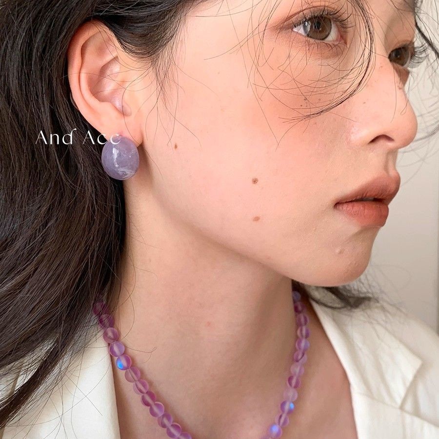 And Acc清透紫色日系小众高级感半圆耳钉设计感不规则晕染耳饰女