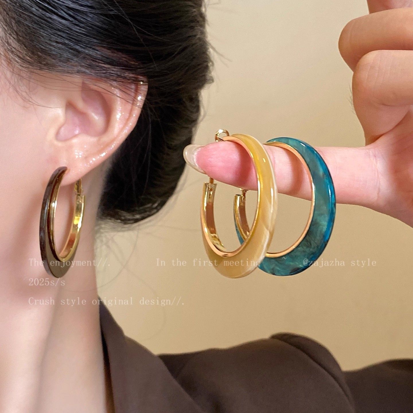 美拉德复古棕色大圈圈耳环女港风2025新款爆款高级感气质耳圈耳饰