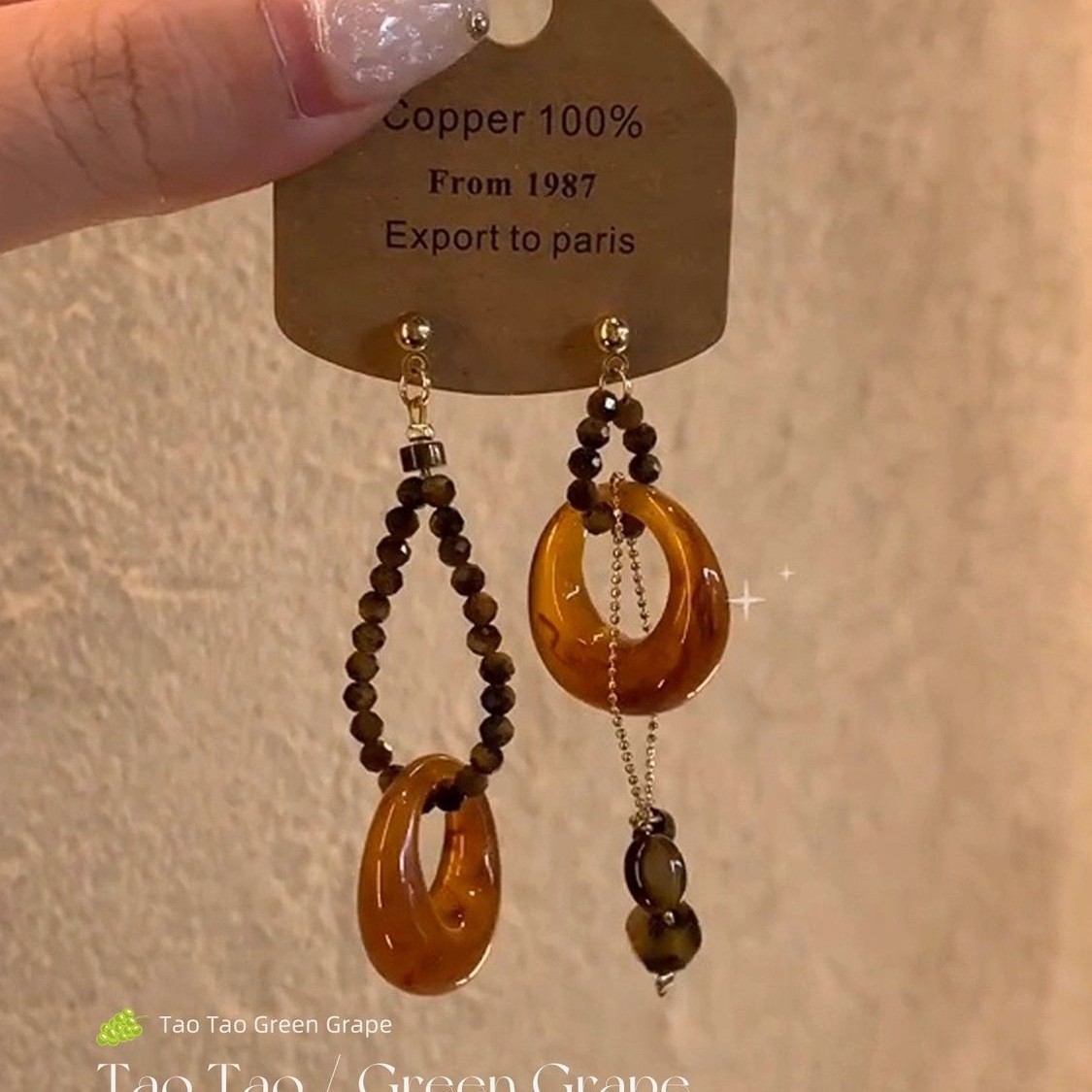 5G入秋 新中式复古串珠流苏耳环女秋冬2025新款不对称高级感耳饰
