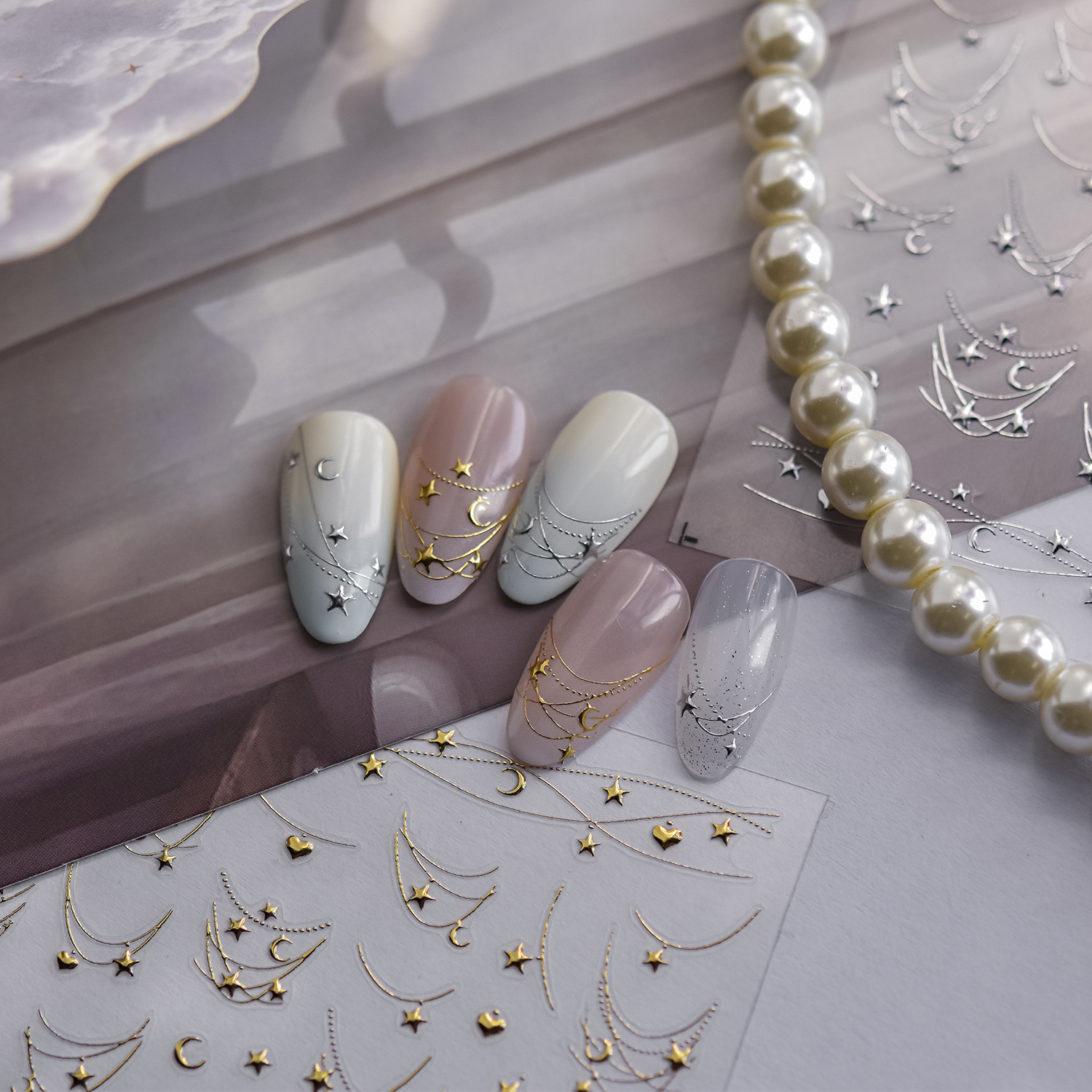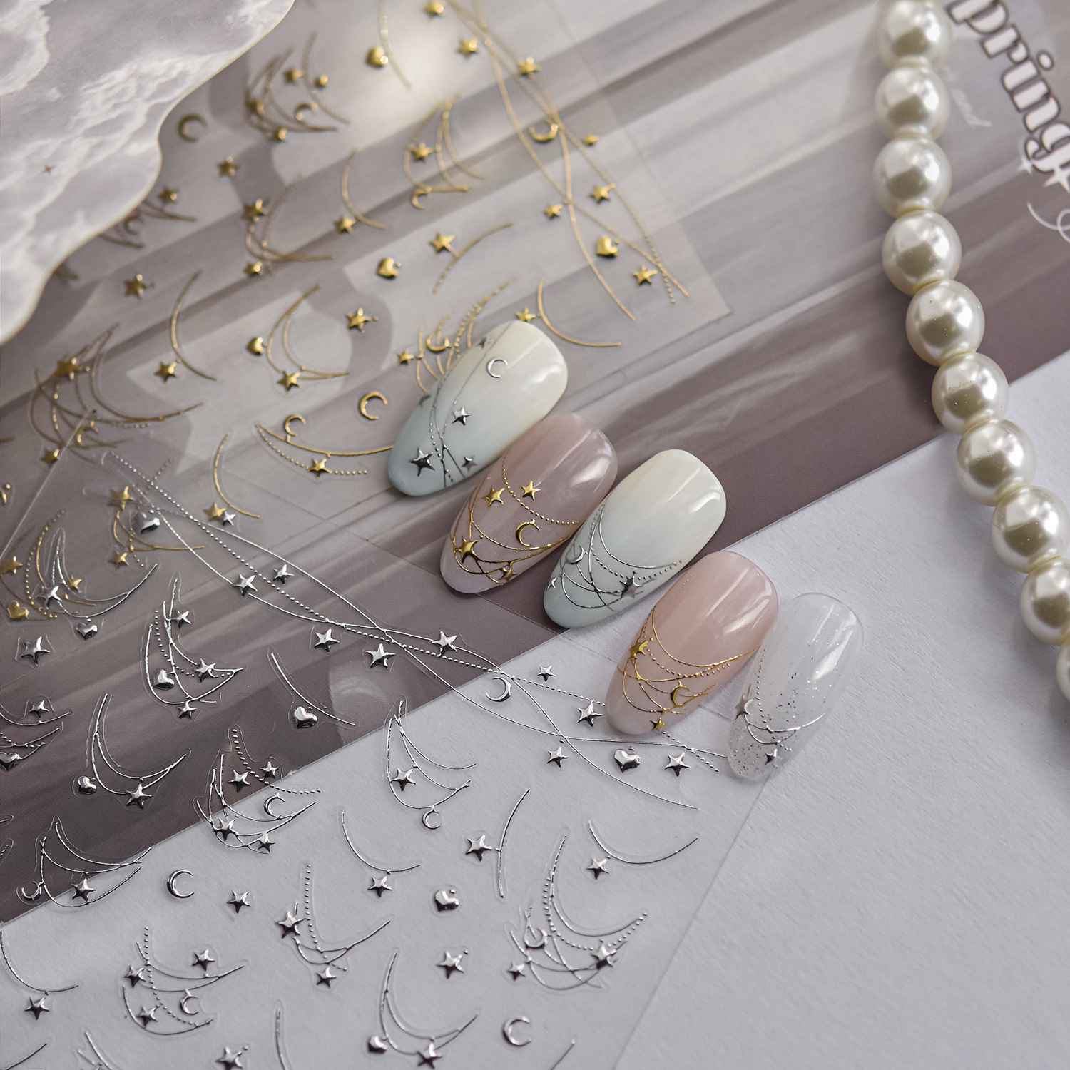 トモニ箔押しネイルアートシンプルネイルステッカー四芒星月小物飾り上海茉紀情報技術ステッカー
