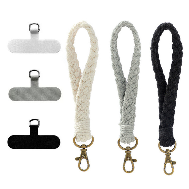アマゾンの爆発的なシンプルな携帯電話のストラップは、手作業で綿のストラップを編む手首にキーホルダーを掛けます