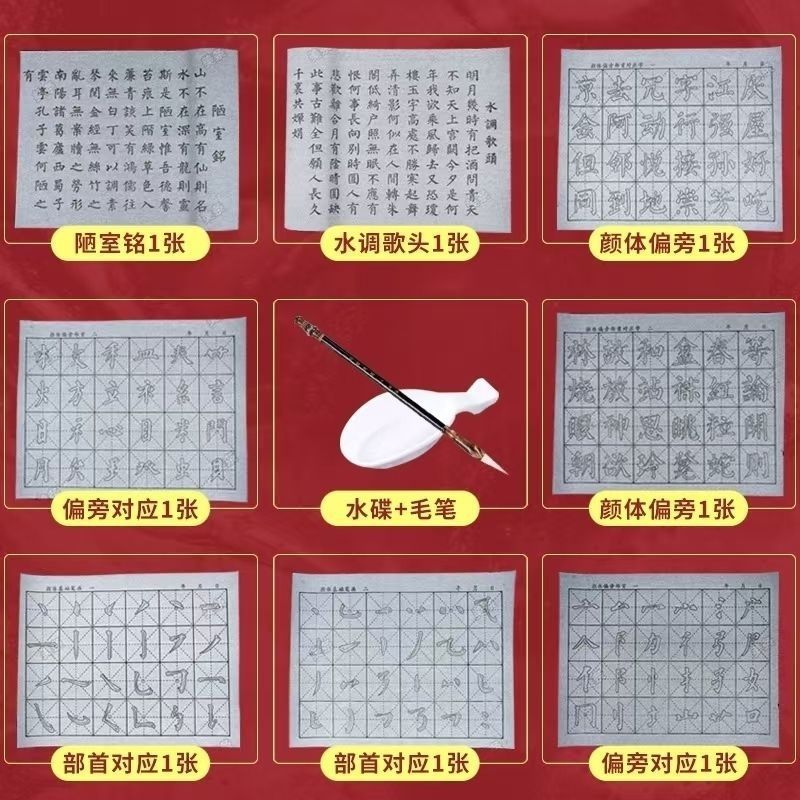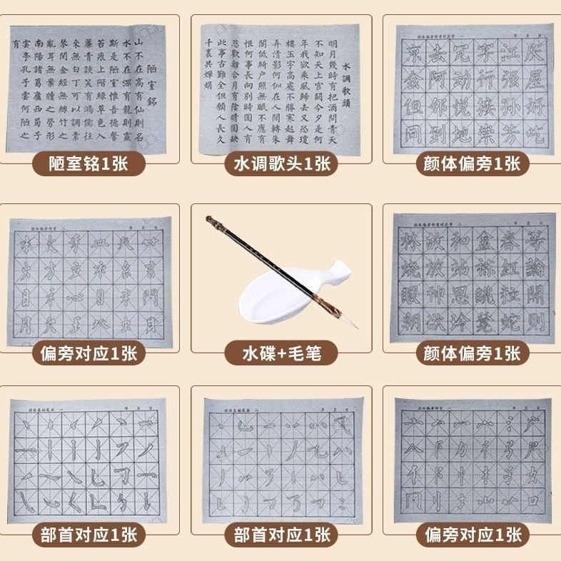 学生・大人向け水書き布10点セット、入門練習用ペンコントロール書道コピーブラシ楷書セット