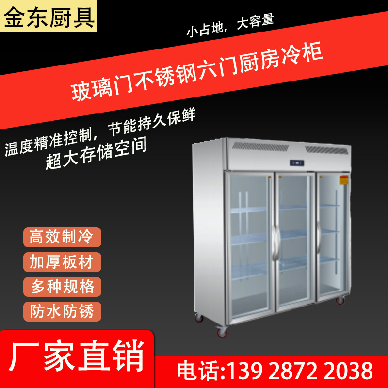 ガラスドアステンレス6ドアキッチン冷凍庫