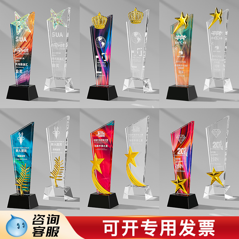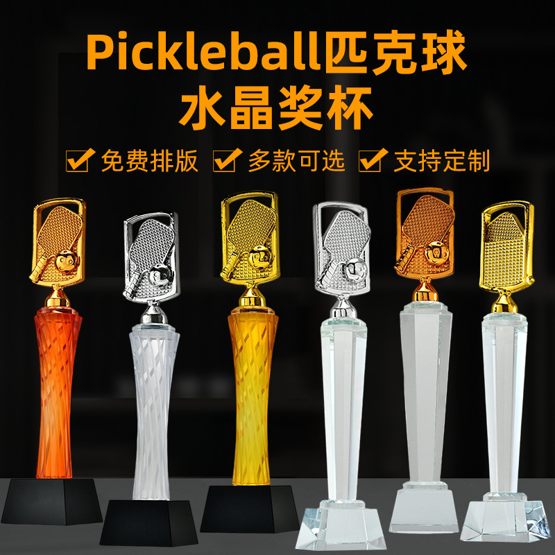 水晶奖杯匹克球比赛颁奖奖杯琉璃公司年会颁奖创意高档大气摆件品