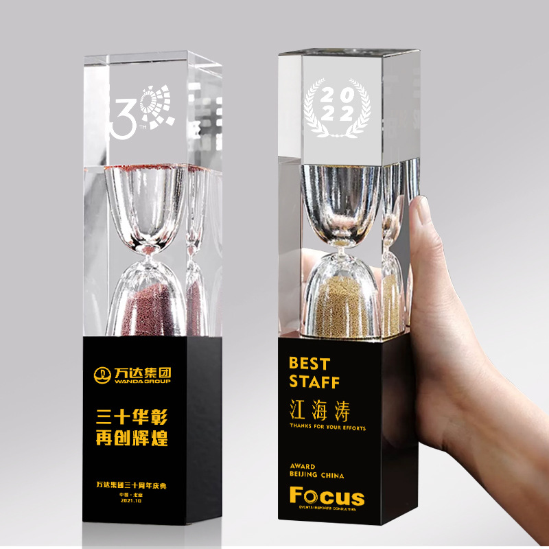 創意砂時計水晶賞ガラスメダル社員チーム試合記念表彰彫刻会社記念品