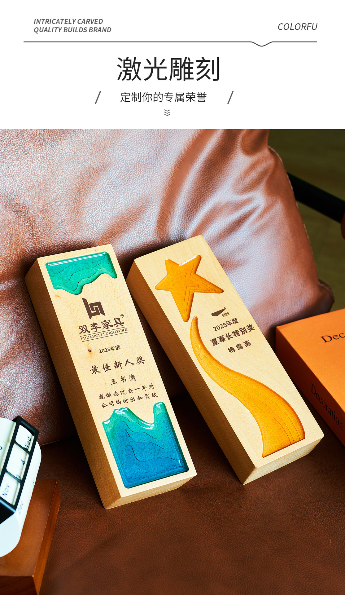 トロフィー生産クリスタルハイエンド雰囲気クリエイティブ優秀従業員栄光退職メダル無垢材トロフィー彫刻