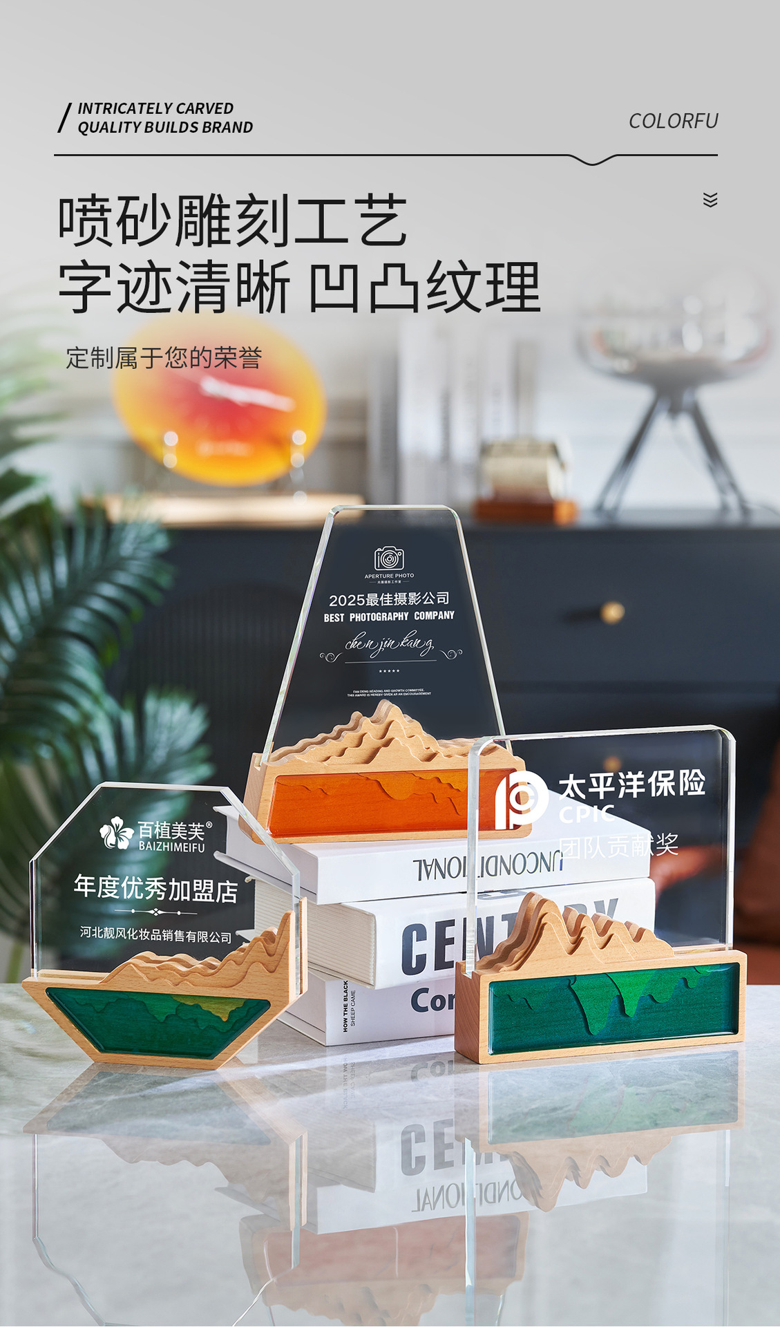クリエイティブガラス山トロフィー制作年次総会リーダー優秀チームシリーズメダル退職賞記念品