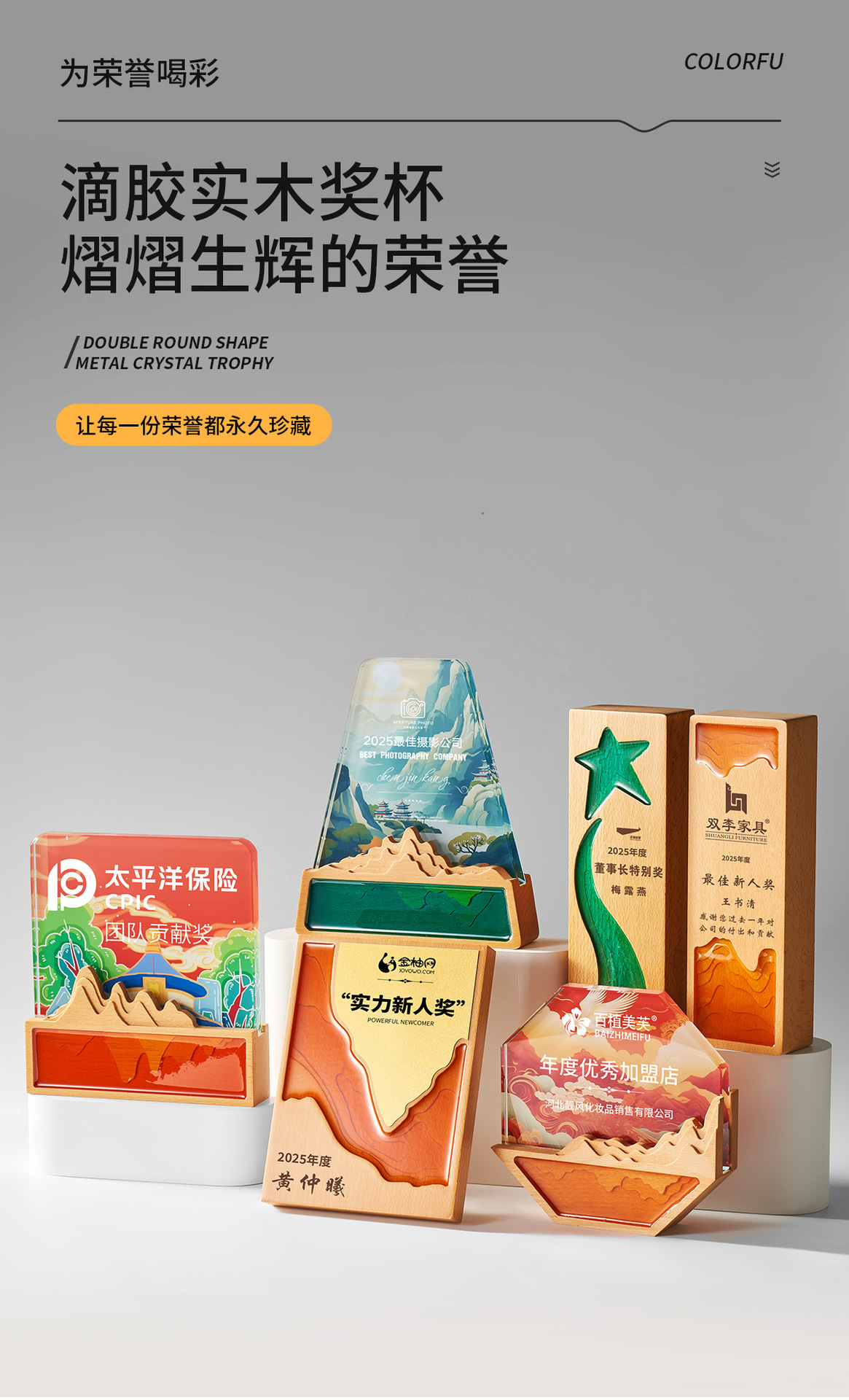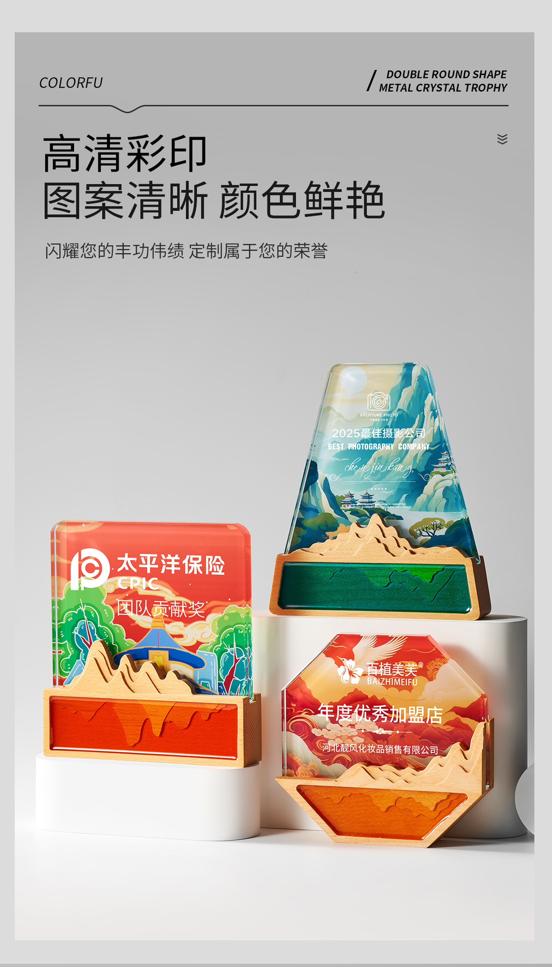 創意水晶トロフィー彫刻授権牌実木メダル制作年会優秀社員栄誉授賞記念品