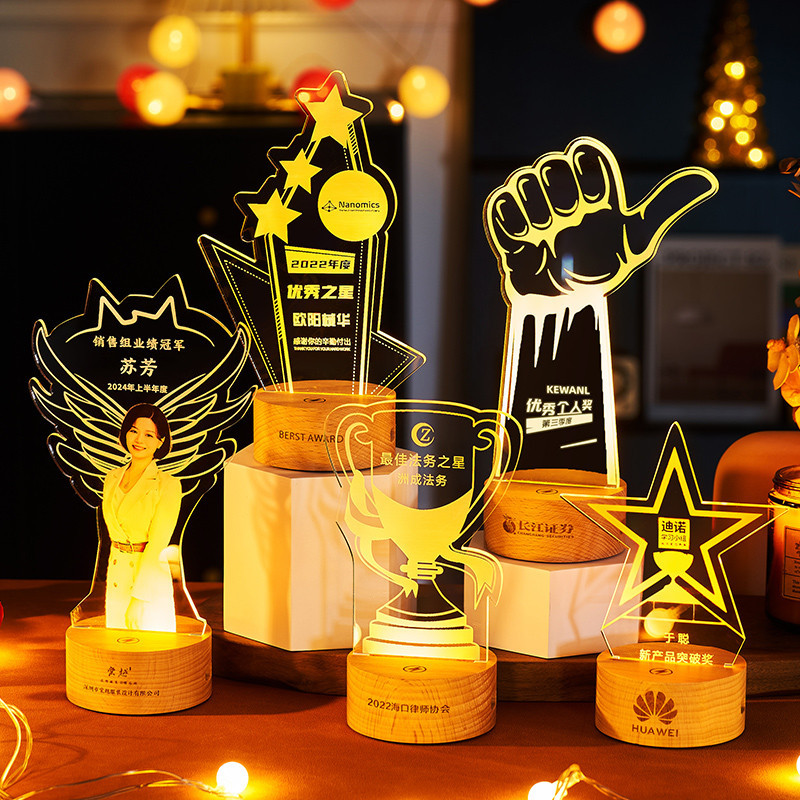 クリスタルトロフィーアクリル発光ナイトライト新しい文化的で創造的な製品学校記念日記念品企業会社