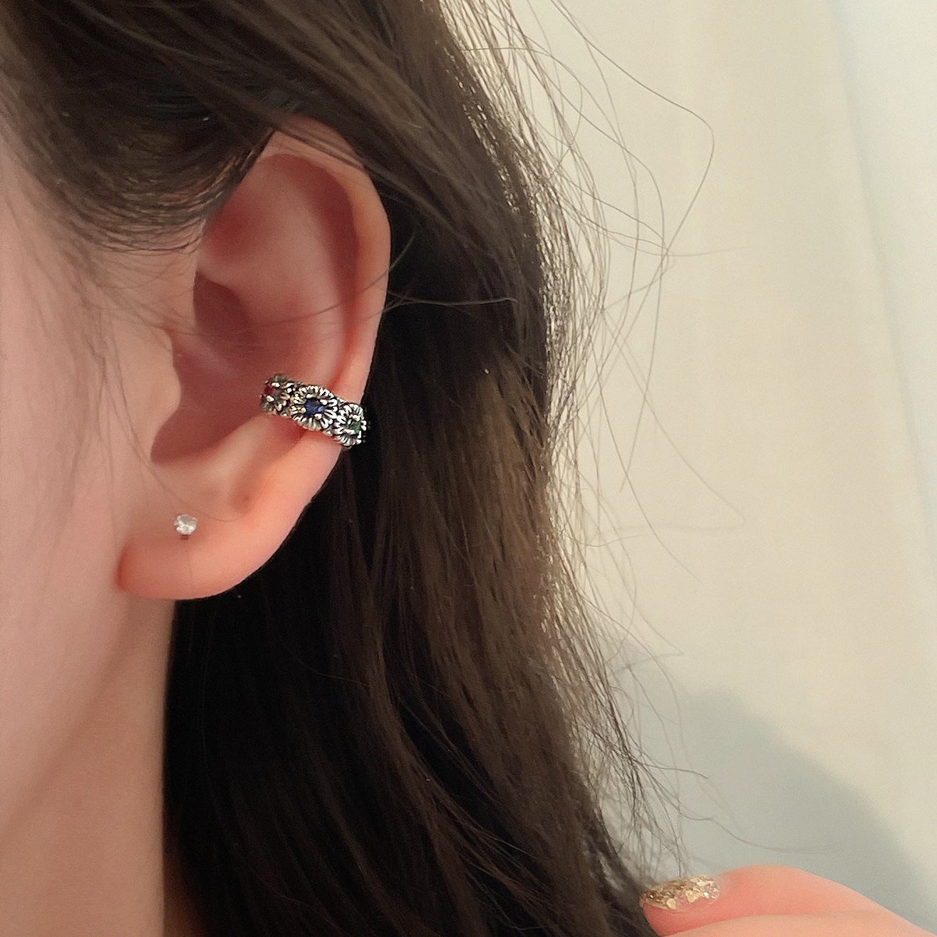 高定カラージルコニウムの小さいデイジーの耳のクリップの女性の耳の穴のイヤリングの小さい大衆の設計の個性の国の潮の冷たい風の耳の骨のクリップ