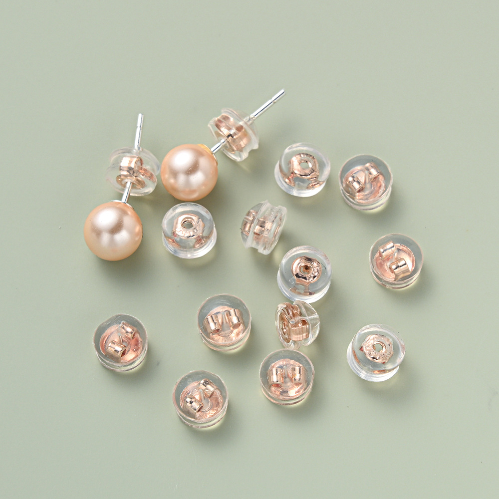 DIY パール耳栓イヤリングイヤリング耳栓外側シリコン耳栓イヤリング耳栓キャップ 18 K 電気メッキ透明耳