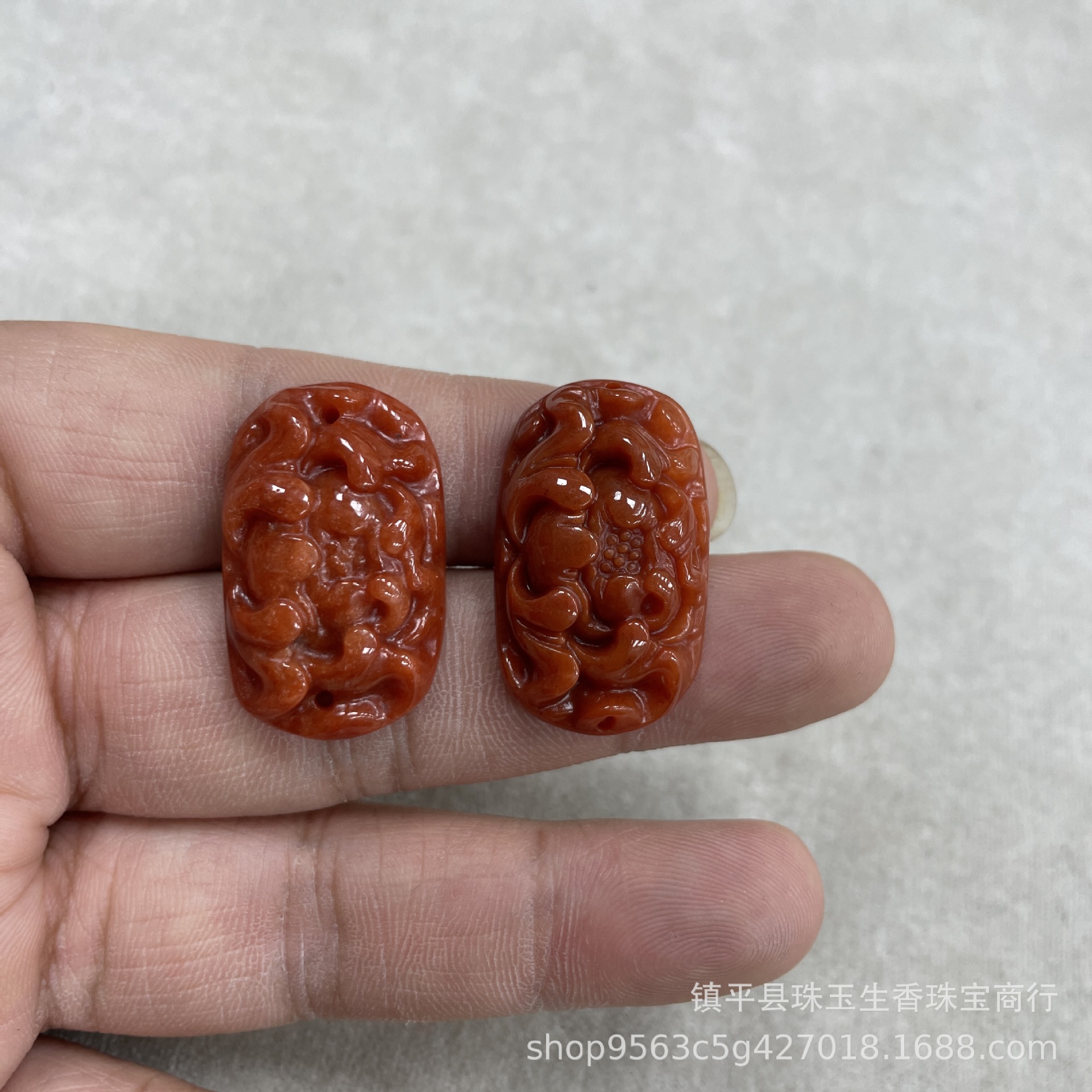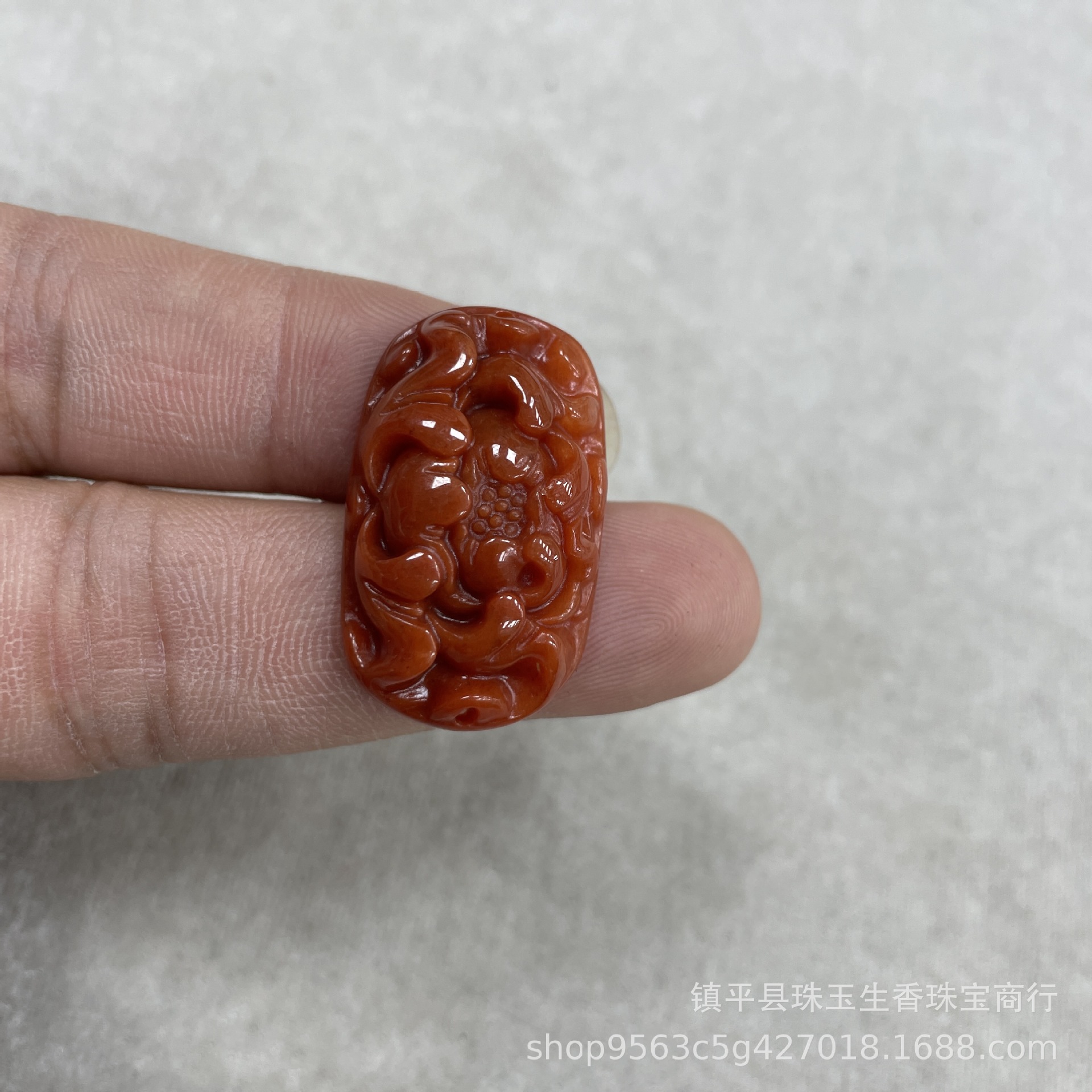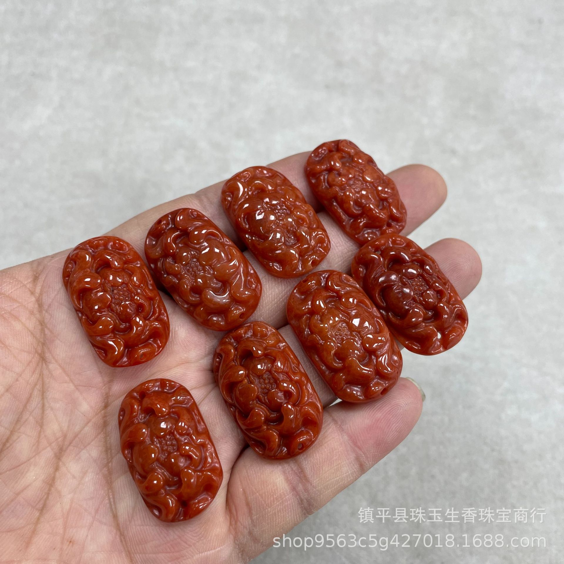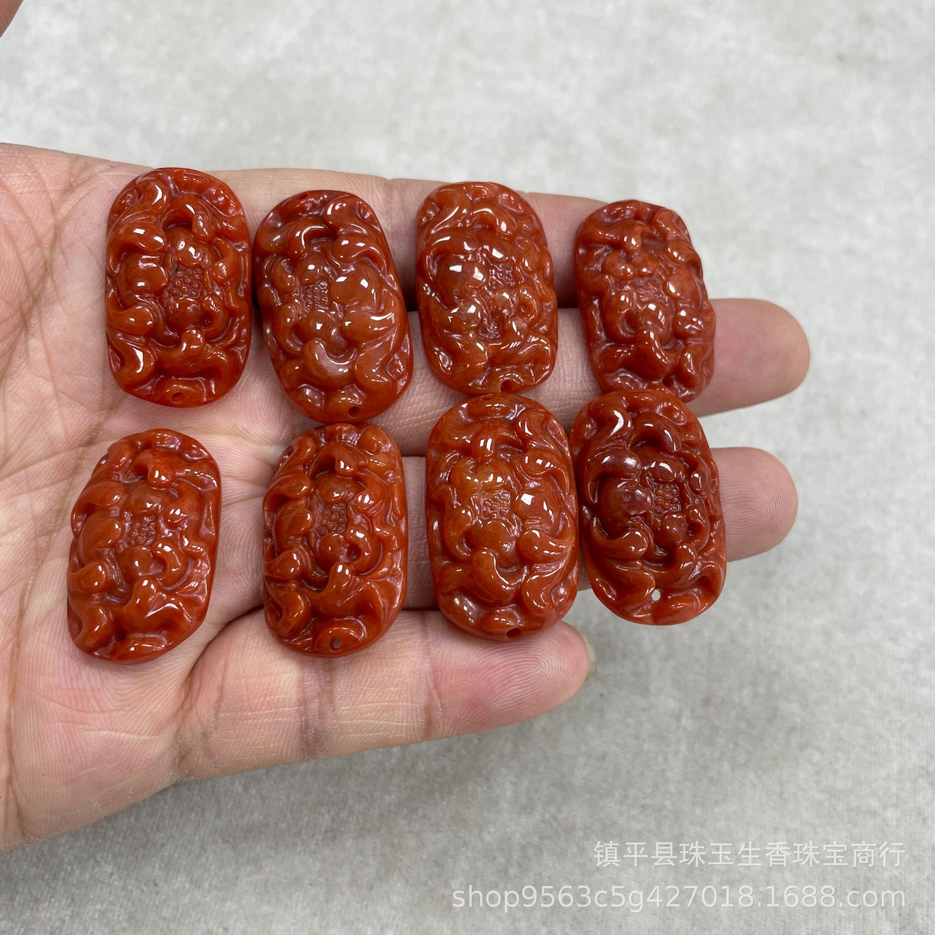 エメラルドレッド翡翠牡丹の花ハンドアクセサリー卸売 diy 翡翠ジュエリーブレスレットネックレス上下穴アクセサリー
