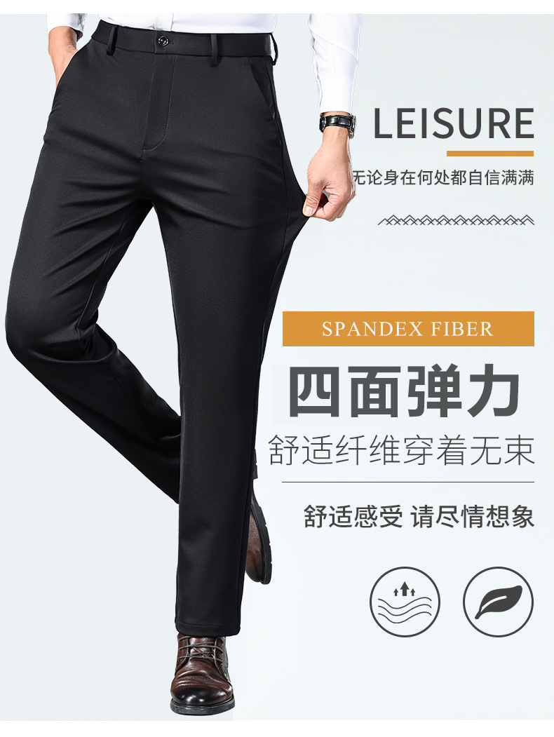 秋冬メンズカジュアルパンツ、ストレートレッグ、伸縮性、ビジネス、若者向け、4方向伸縮性、スリムフィット、高伸縮性、快適
