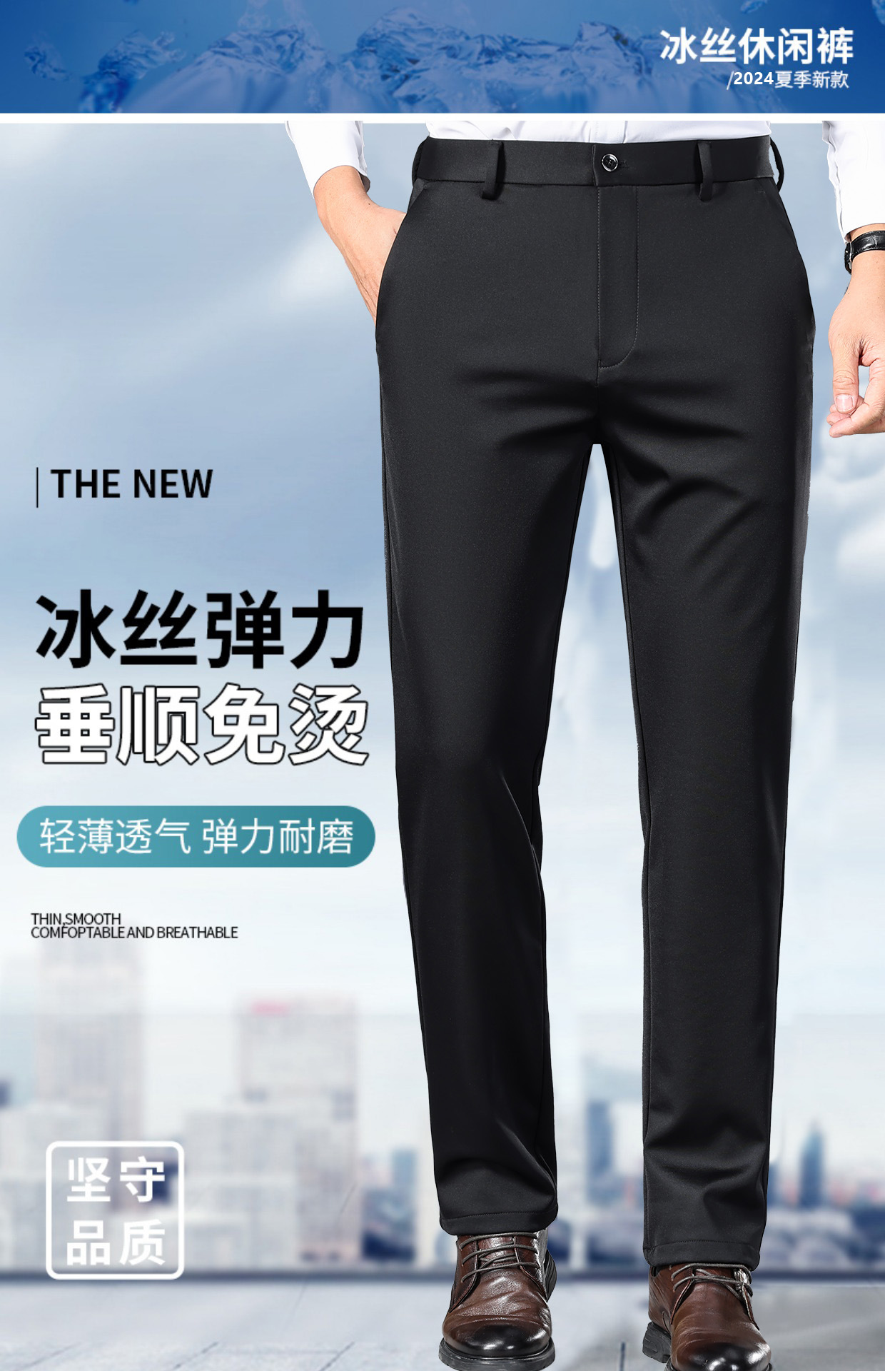 カジュアルパンツ男性直筒夏の薄い弾力性男性ズボン男性ズボンビジネス氷糸四面弾ゆるいズボン