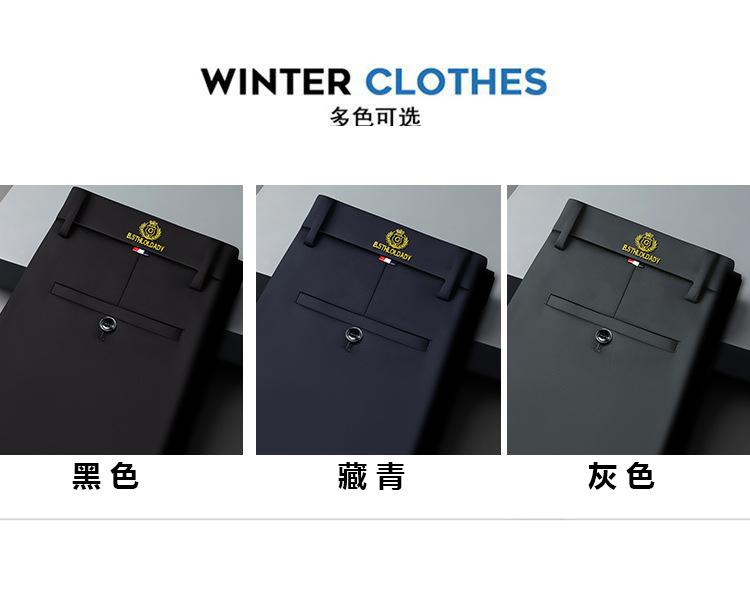秋冬加毛カジュアルパンツ男直筒ビジネス弾力男ズボン虎頭刺繍韓国版青年四面弾ズボン