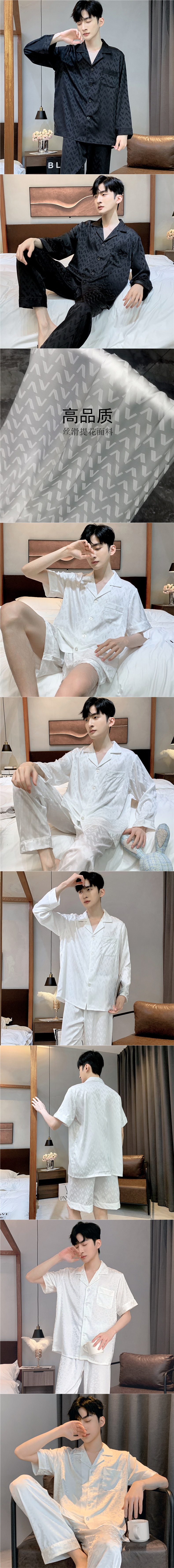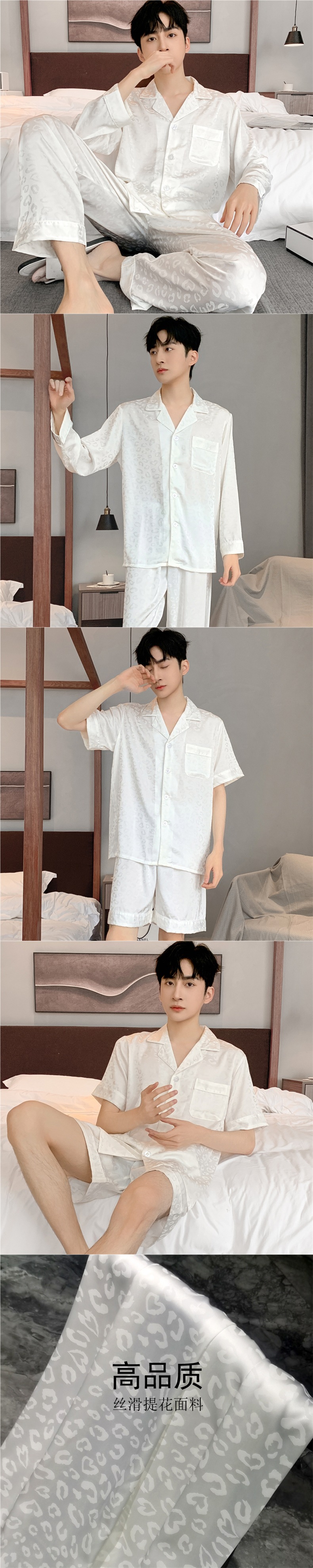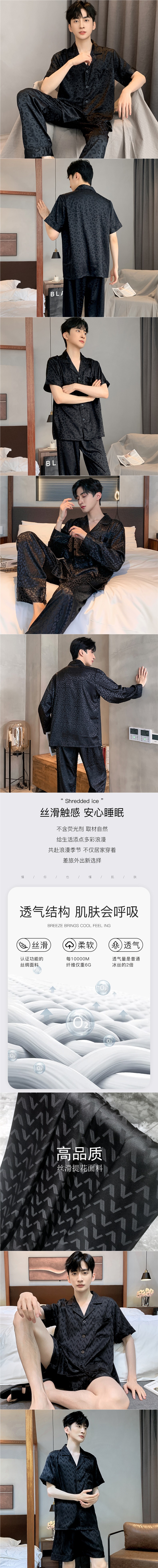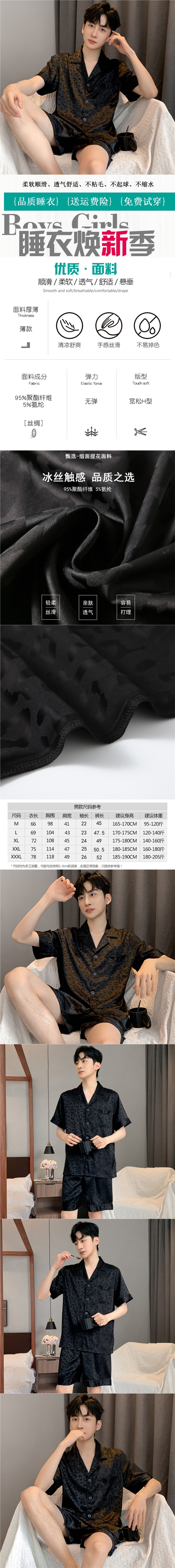 ブラックヒョウ柄春夏アイスシルクパジャマメンズ夏半袖メンズホーム服春秋メンズ大きいサイズシルク