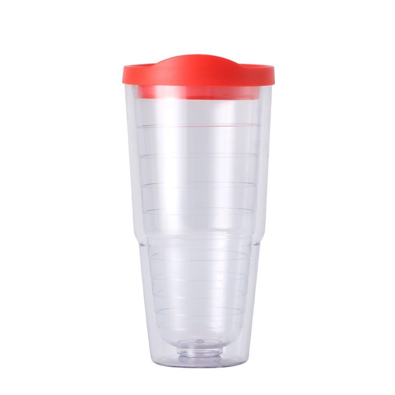 創意ねじ内胆二層食品級プラスチックカップ24オンス二層プラスチック車載広告カッププッシュカバー