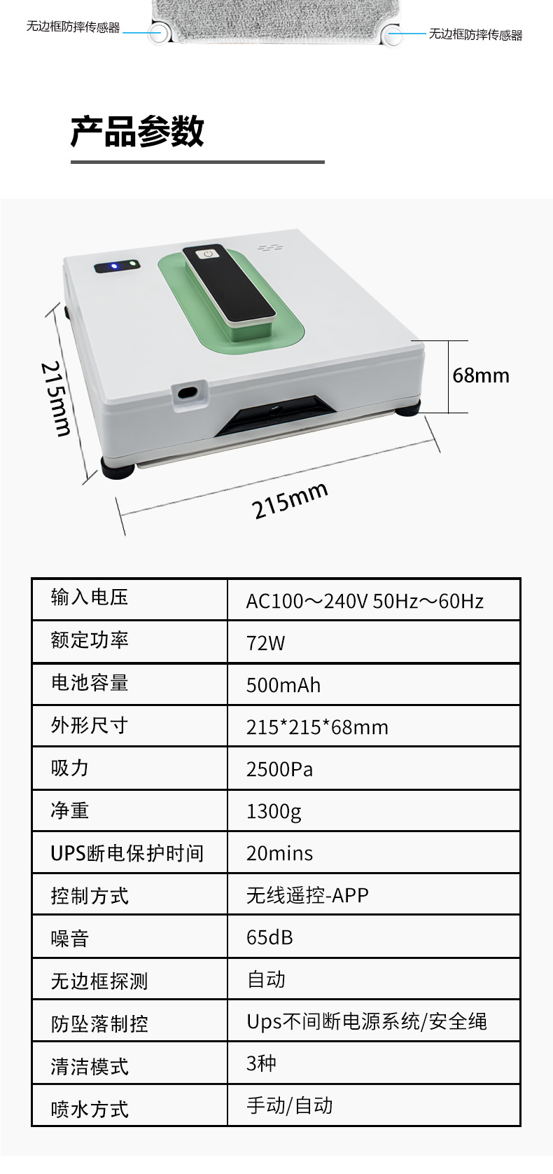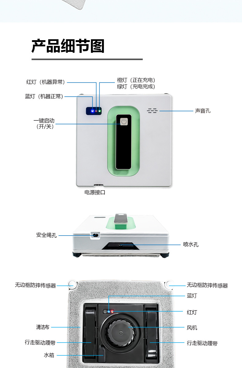 全自動窓掃除機、ダブルウォータースプレー、AI経路計画、家庭用、2.4Gリモコン、スマホアプリ対応、スマート