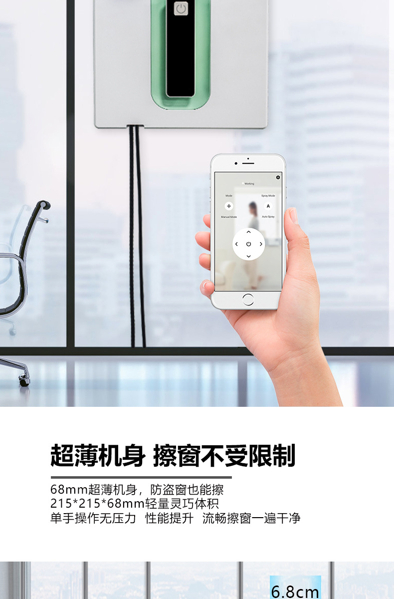 源工場の超薄全自動二重噴水窓拭きロボットスマートリモコン携帯電話APP音声アナウンス
