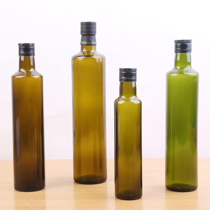 500ml方形橄榄油瓶圆瓶墨绿透明茶油瓶核桃油香油料酒瓶玻璃瓶