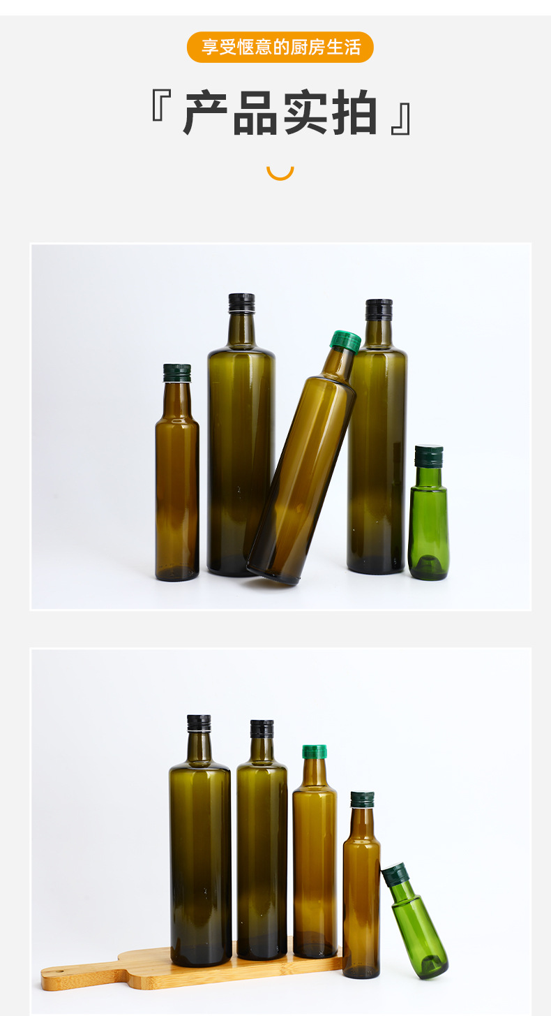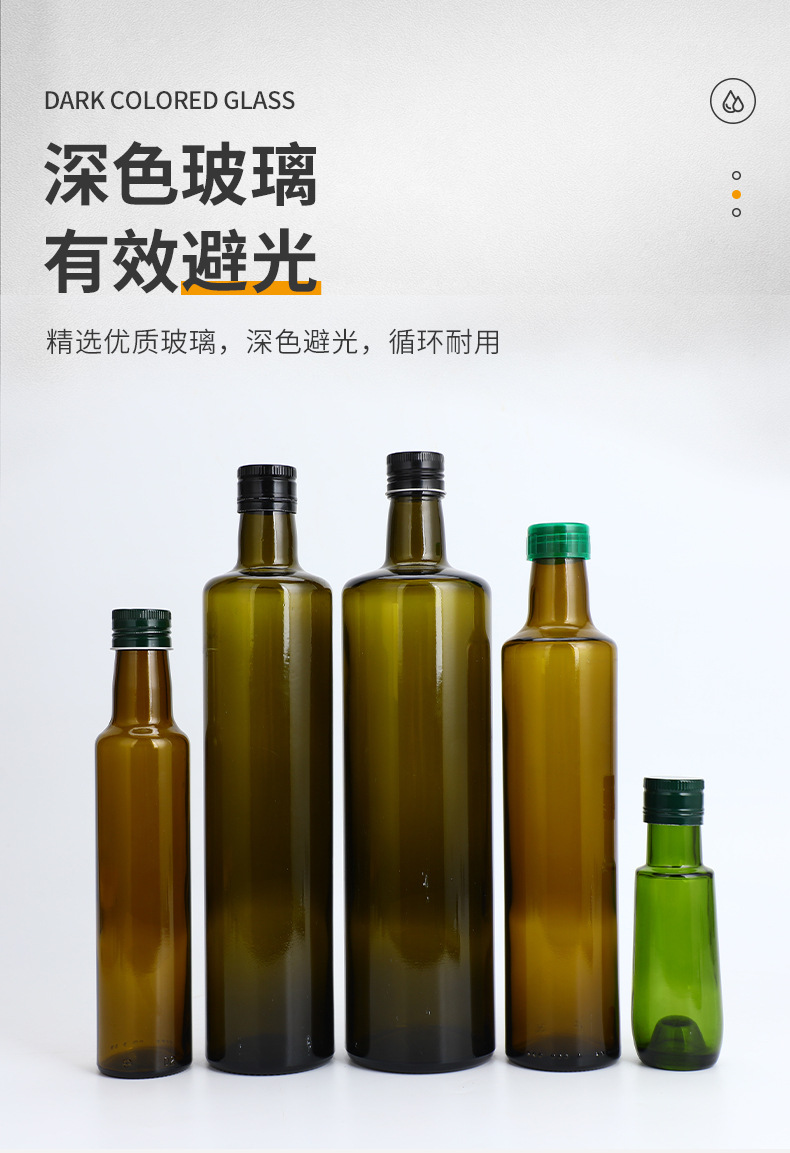 透明玻璃瓶墨绿色橄榄油瓶茶色山茶油瓶核桃油瓶芝麻油玻璃瓶