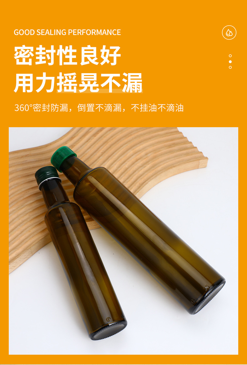 250mlガラス瓶500mlオリーブ油瓶山茶クルミ油瓶茶色遮光ガラス油瓶
