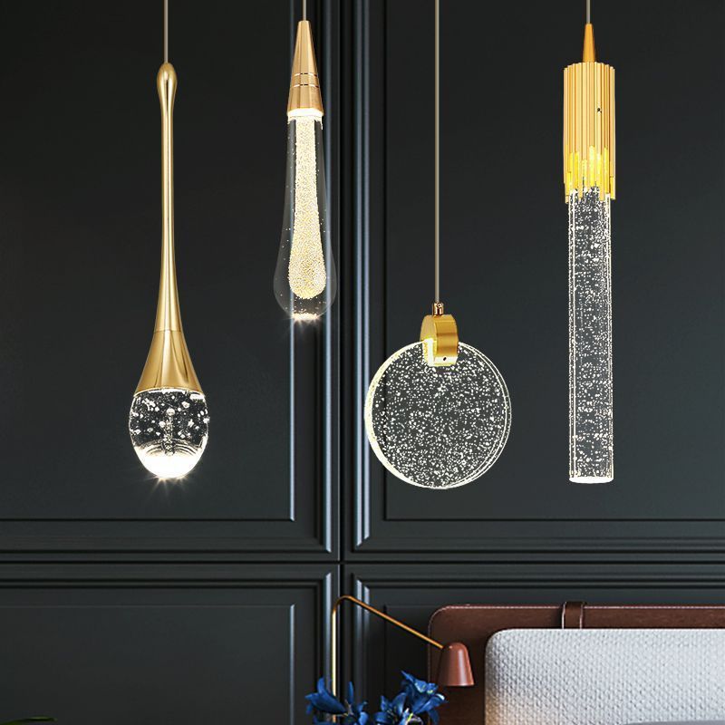 卧室床头小吊灯网红轻奢床头柜水晶吊线灯电视背景墙吧台单头水滴