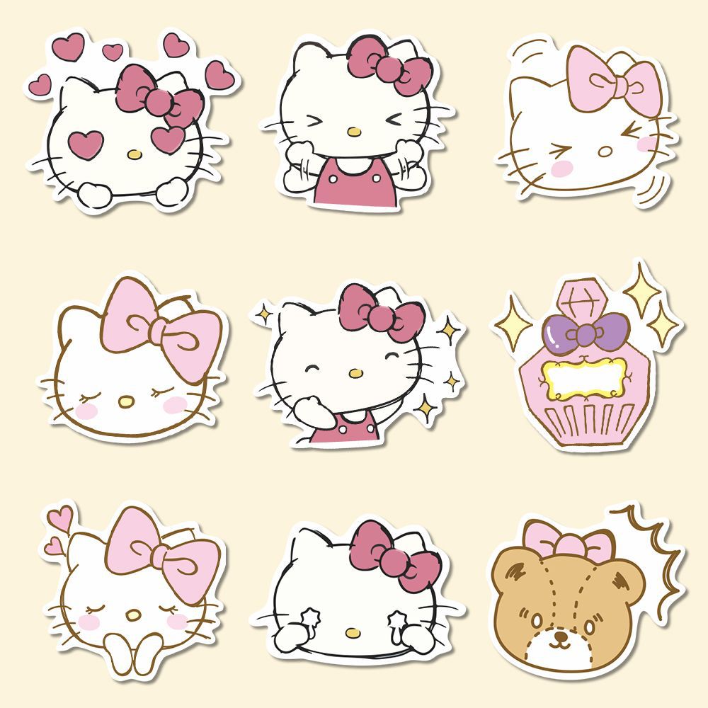200张美食HelloKitty贴纸卡通可爱凯蒂猫创意diy装饰手账水杯贴画