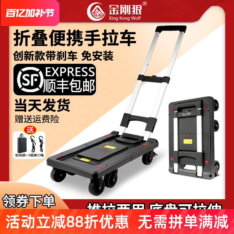 ウルヴァリン家庭用トロリー、手押し車、折りたたみ式ポータブルトロリー、食料品ショッピングカート、小型トロリー、軽い音