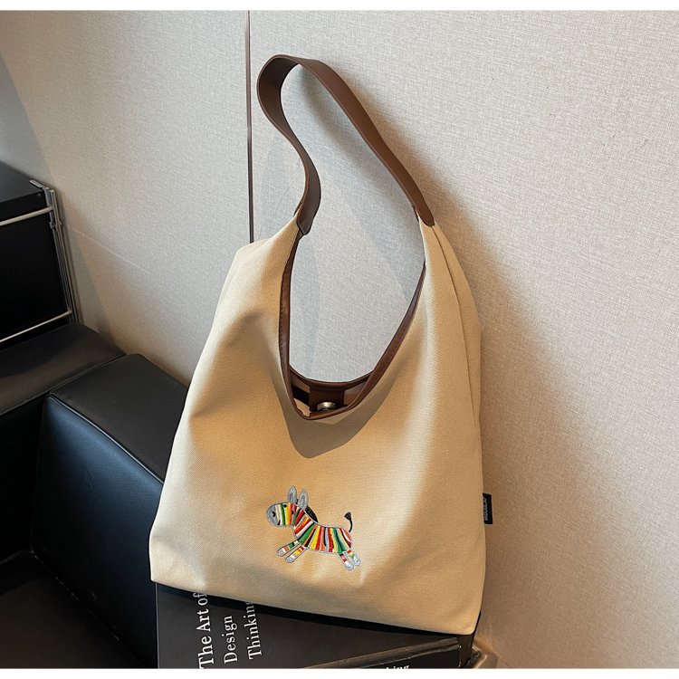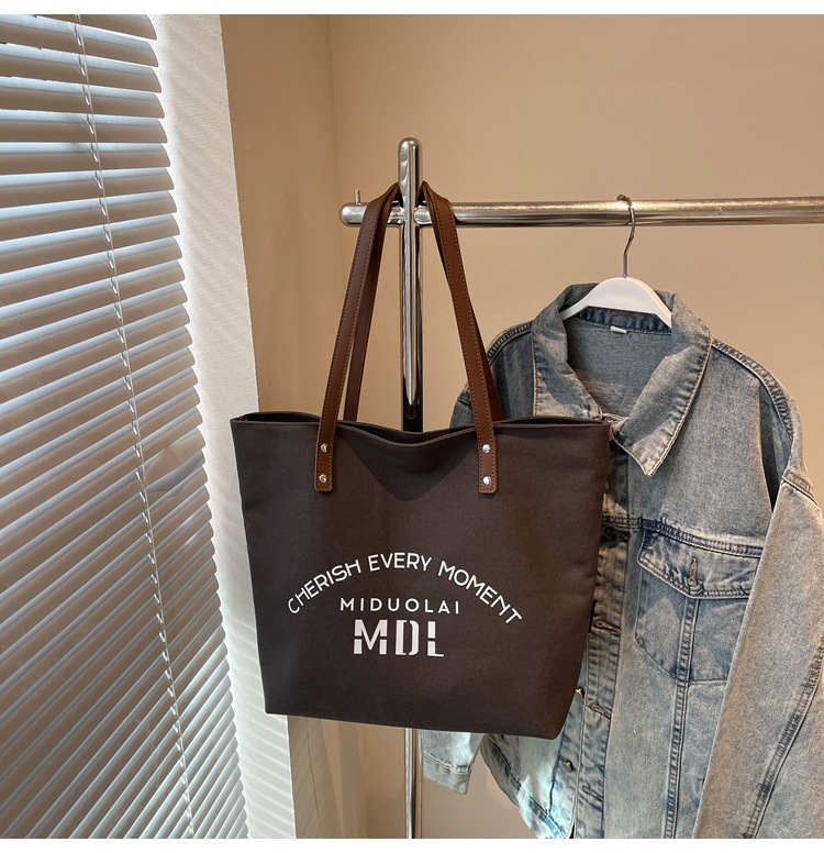 跨境2025秋季新款简约帆布包通勤大容量印花设计慵懒风单肩腋下包