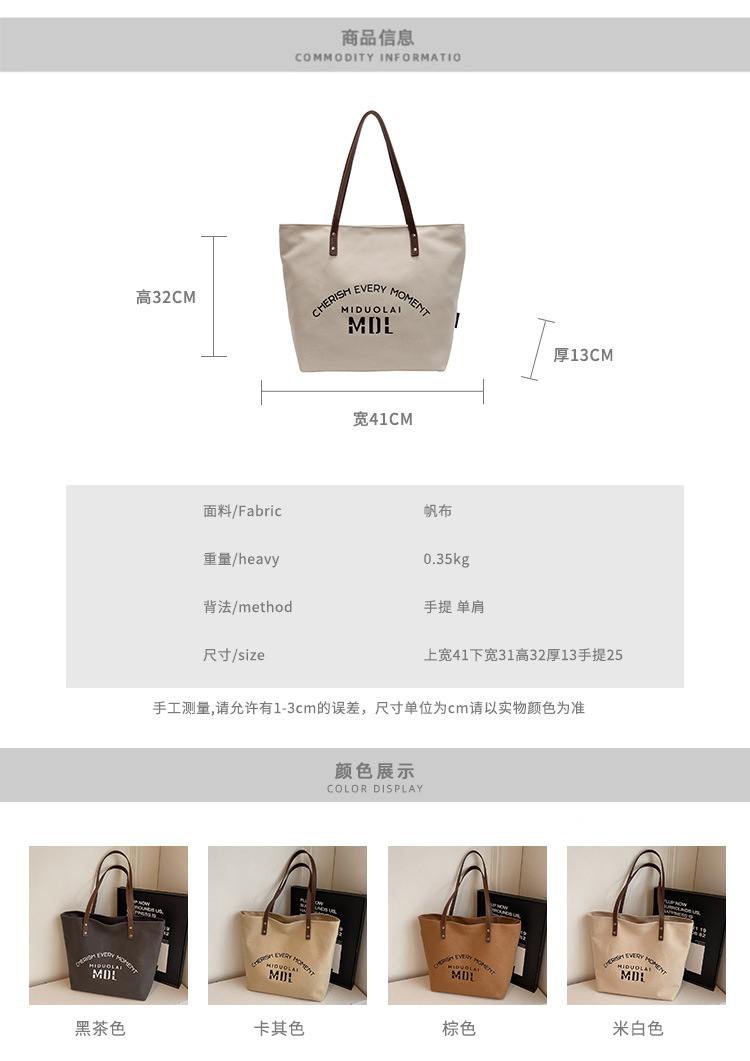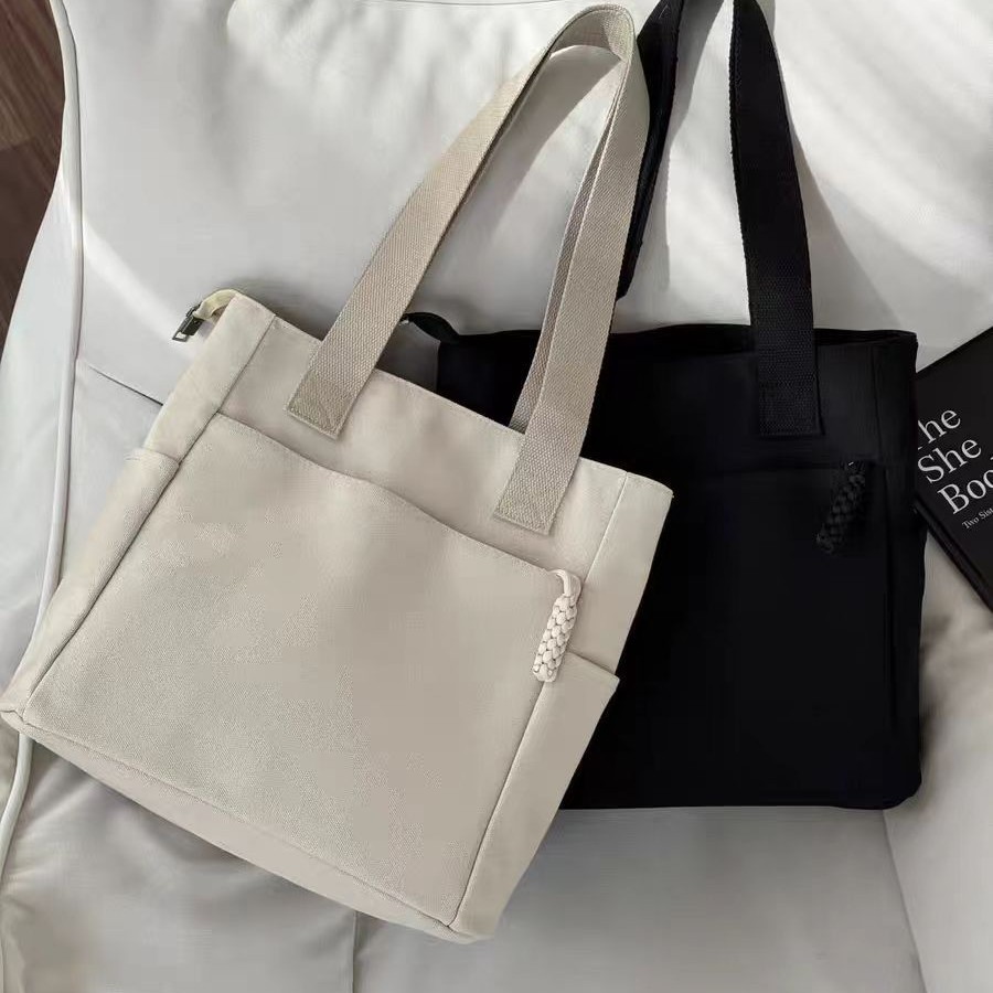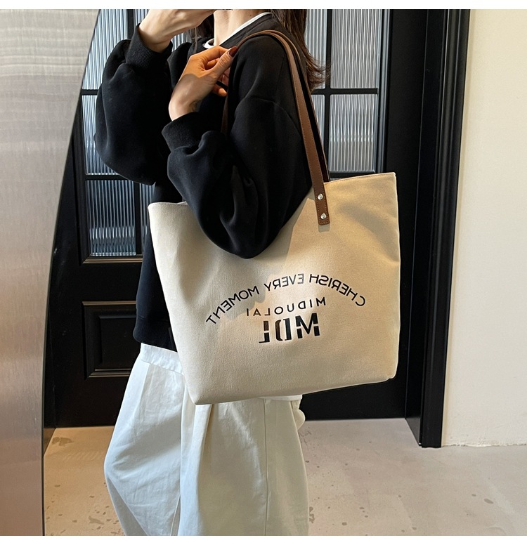 日系原创设计包简约文艺学生通勤帆布托特包休闲单肩手提拉链加厚