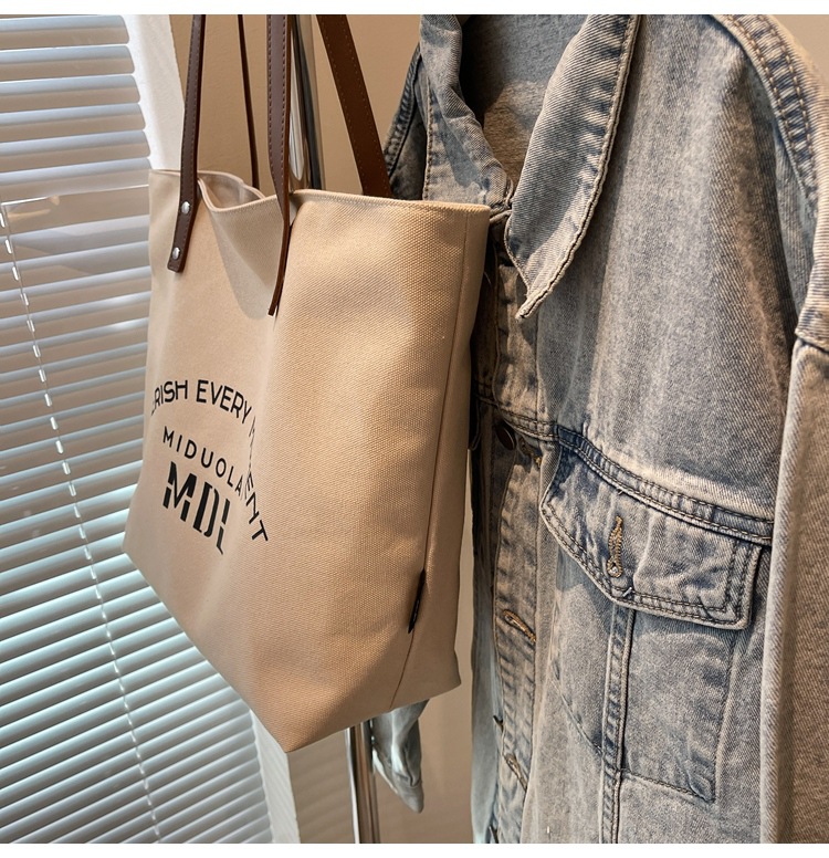 オリジナルデザインの日系ファスナー通勤厚手キャンバストートバッグカジュアル文芸学生シンプルシングルショルダーバッグ