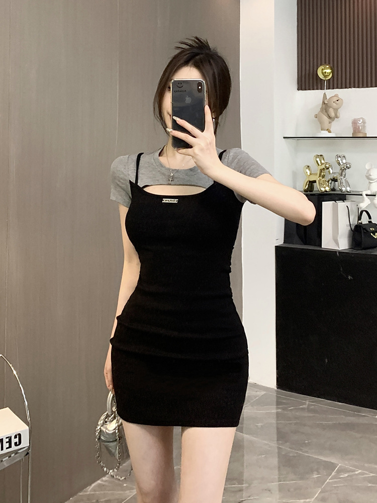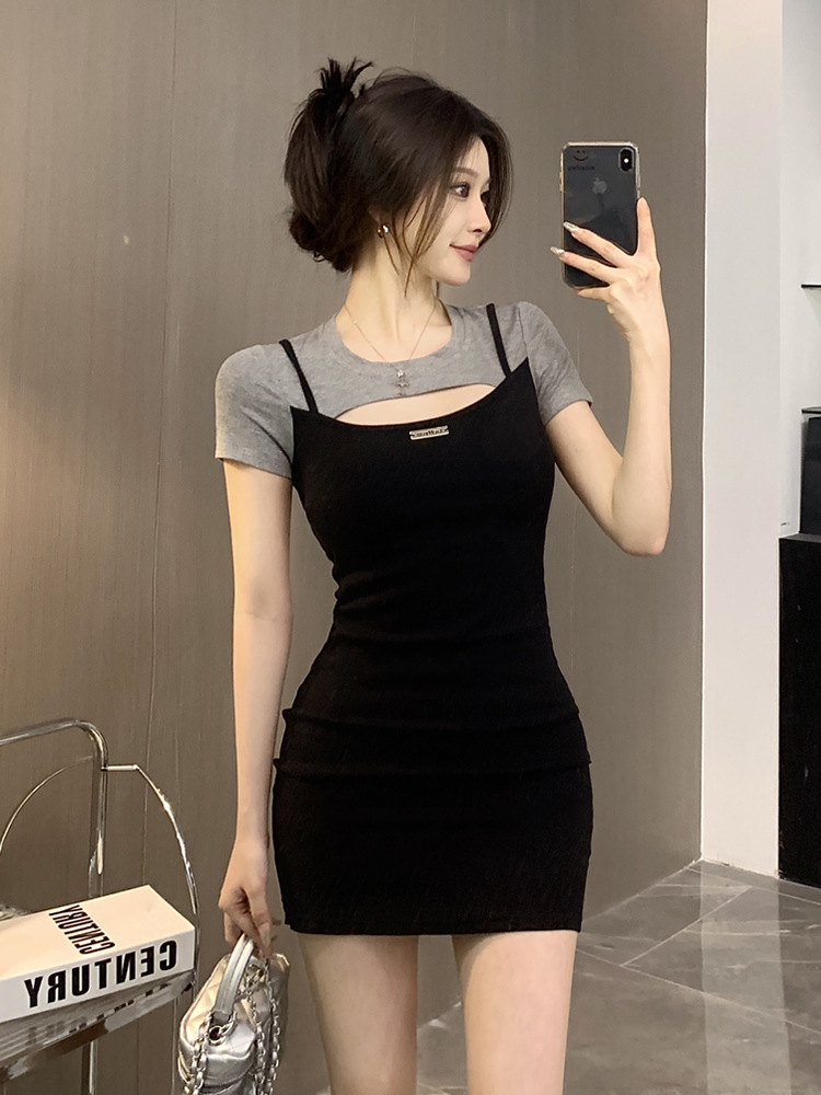 セレブデザインの女性用半袖ドレス 2025 夏ハイエンド多用途ファッションレトロスリムフィットヒップスカート