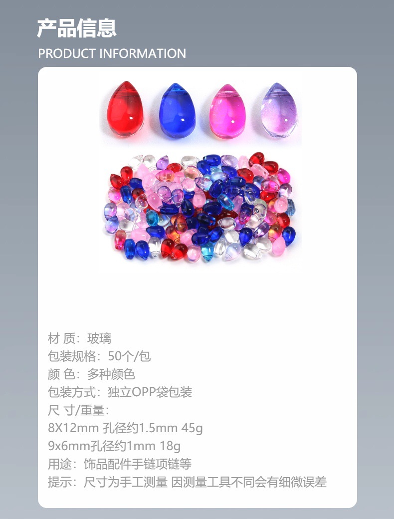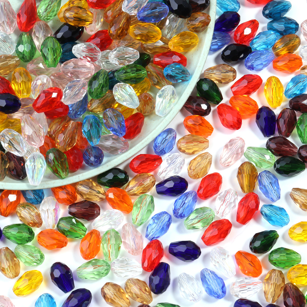 Diy手作りビーズ材料頭花部品散珠水晶中穴水滴玉10x15mm 50粒/条