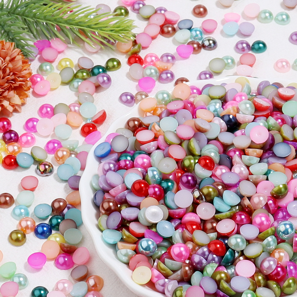 欧米の起爆カラー模造真珠パッチdiyシミュレーション平底五色珠半円服装髪飾り珠部品