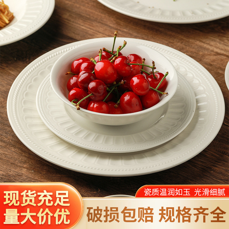 皿陶磁器果物皿軽豪華レトロレリーフ陶磁器食器洋食皿麦わら帽子碗魚皿レリーフ碗小売