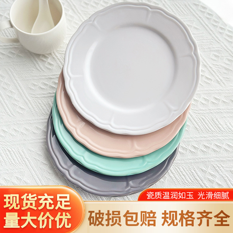 シンプルなレリーフ8インチ皿家庭用料理皿10インチ菓子皿耐高温サラダボウルレトロなセラミック食器