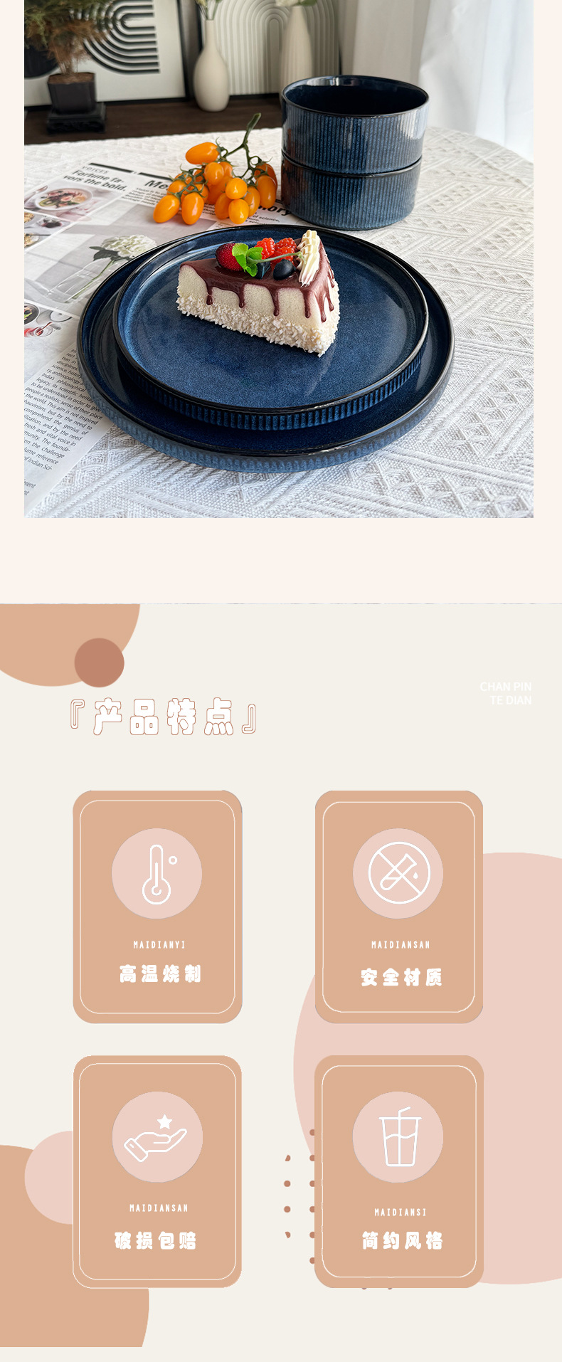 墨かけ陶磁器皿洋食韓国insステーキ皿レトロ小衆レストランケーキデザート皿家庭料理皿