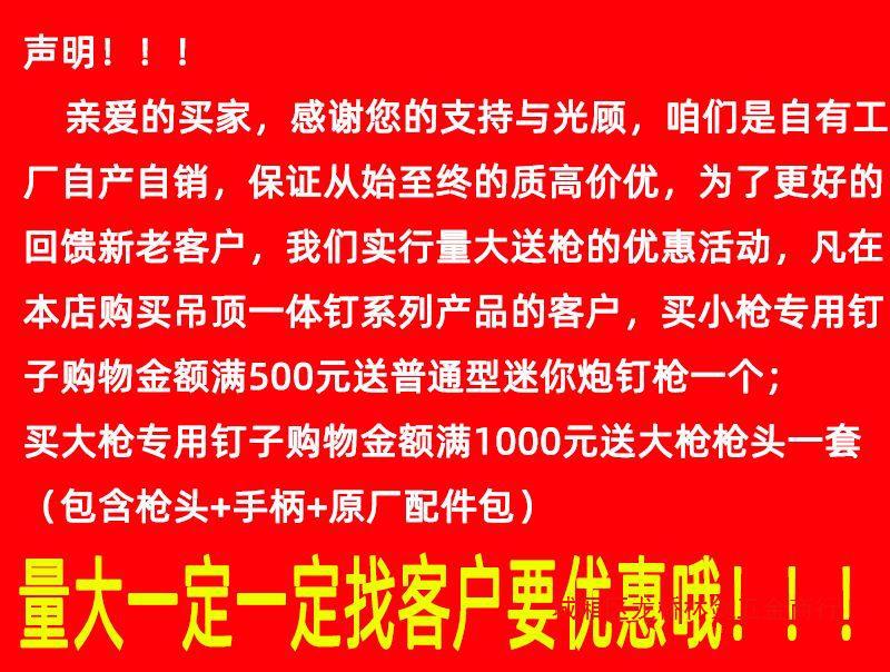 大威力・消音ダム弾・大砲・一体型釘M6【500本/箱】,ハイパワー/サイレントダム弾-ビッグガン/一体型ネイルM8【500個/箱】,ハイパワー/サイレントダム弾-ビッグガン/一体型ネイル M10 【500本/箱】,ハイパワー/サイレントバレットレスミニガン/ファイヤーネイル27【1000本/箱】,大威力・消音ダム弾・大砲・ファイアネイル32【1000本/箱】,大威力・消音ダム弾・大砲・ファイアネイル42【1000本/箱】,大威力・消音ダム弾・大砲・一体釘M6【1箱1000本】,ハイパワー/サイレントダム弾-ビッグガン/一体型ネイルM8【1000本/箱】,ハイパワー/サイレントダム弾-ビッグガン/一体型ネイル M10 【1箱1000個】,ハイパワー/サイレントバレットレスビッグガン/ファイアネイル32本【2000本/箱】,大威力・消音ダム弾・大砲・ファイアネイル42【2000個/箱】,大威力/消音ダム弾なし-大砲/砲身スタッド#16【1000個/箱】,大威力/消音ダム弾なし-大砲/砲身スタッド#20【800個/カートン】,大威力/消音ダム弾なし-大砲/砲身スタッド#25【800個/カートン】,大威力/消音ダム弾なし-大砲/砲身スタッド # 32【600個/カートン】,大威力/消音ダム弾なし-大砲/砲身スタッド#40【500個/カートン】,大威力/消音ダム弾なし-大砲/砲身スタッド#50【300個/カートン】,大威力・消音ダム弾・大砲・ファイアネイル47【1500個/箱】,大威力・消音無ダム弾・大砲・L型木製キール釘【500本/箱】,ハイパワー/サイレントバレットレスミニガン/ファイヤーネイル27【2000本/箱】,大威力・消音・ダム弾なし・ミニバレルクリップ#16【1000個/箱】,大威力・消音・ダム弾なし・ミニバレルクリップ#20【1000個/箱】,大威力・消音・ダム弾なし・ミニバレルクリップ#25【1000個/箱】,大威力・消音・ダム弾なし・ミニチューブクランプ#32【700個/カートン】,大威力・消音・ダム弾なし ミニガンロウクランプ【2000個/箱】
