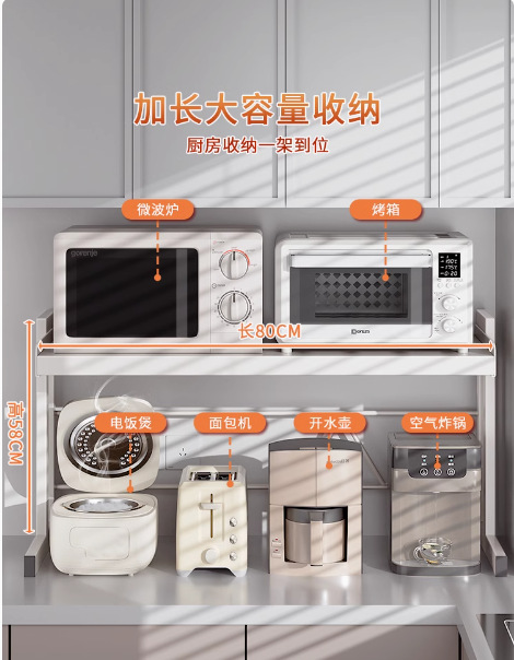厨房分层抽拉式碗盘架锅架台面微波炉置物架烤箱多功能电器收纳架