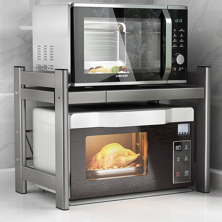引き出し式電子レンジラックステンレス鋼キッチンオーガナイザーカウンタートップオーブン炊飯器エアフライヤー収納ラック