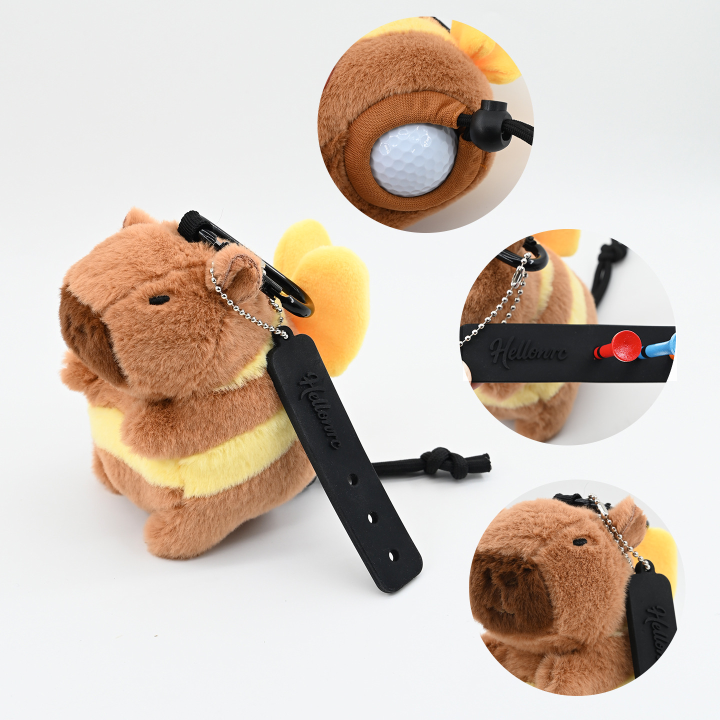 2025跨境高尔夫球收纳袋卡皮巴拉 毛绒公仔 户外运动便携挂钩球钉
