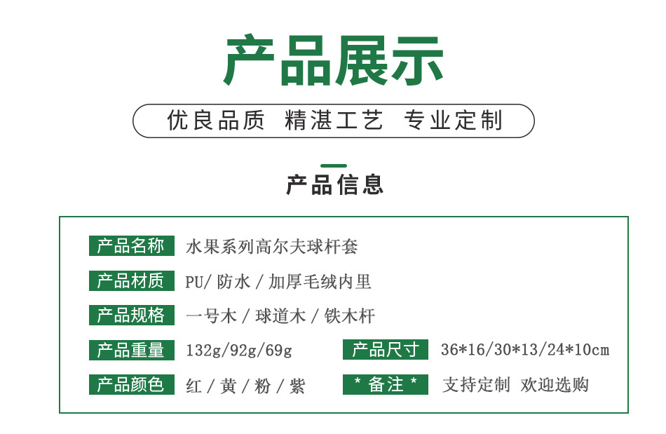 新型メーカーのクロスボーダー卸売ゴルフクラブカバーの保護カバーの果物シリーズのスポーツアウトドア部品