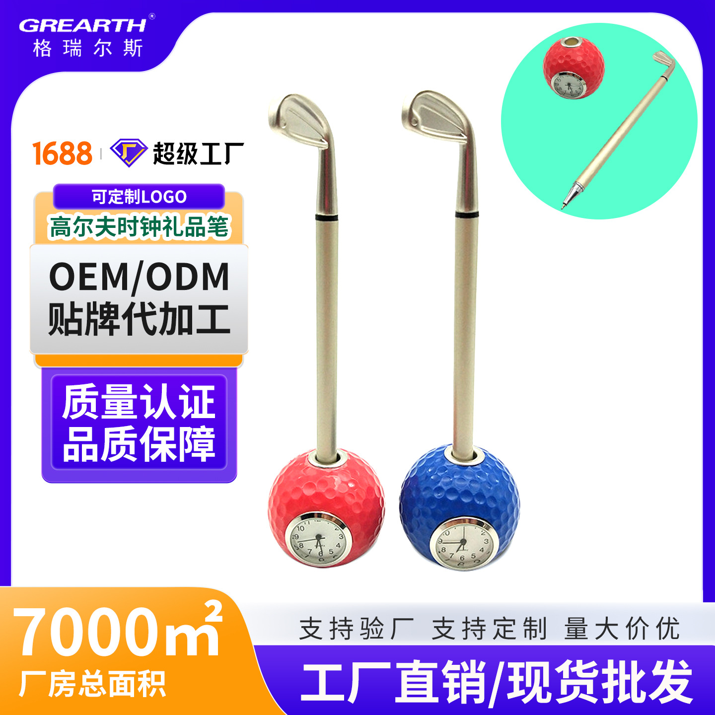 厂家直供高尔夫创意礼品高尔夫球杆时钟圆珠笔桌面摆件纪念礼品笔