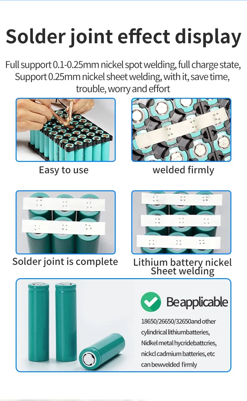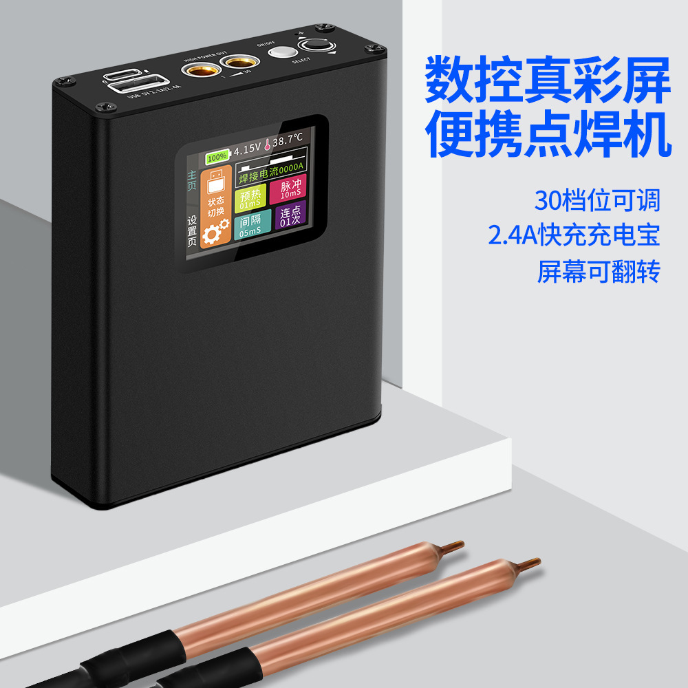 1. 易于携带:小型点焊机输出功率大,适用于快速焊接0.1-0.25mm镀镍钢板和0.15mm纯镍钢板。重量轻,家里节省空间,携带方便。