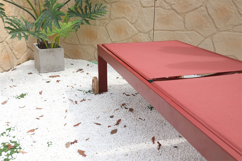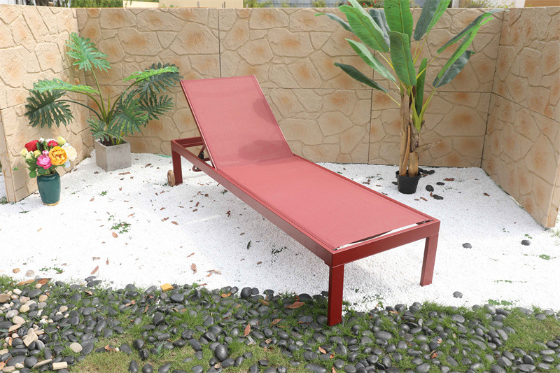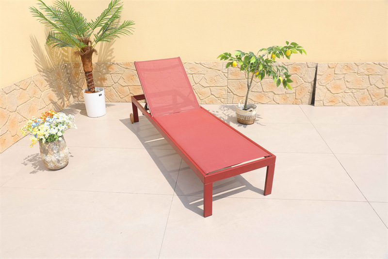 屋外リクライニングベッド防水日焼け止めプールビーチチェアガーデンネット赤休憩椅子ベランダ屋外庭園ネット寝椅子