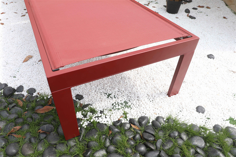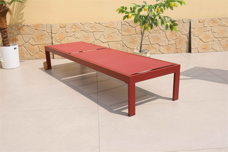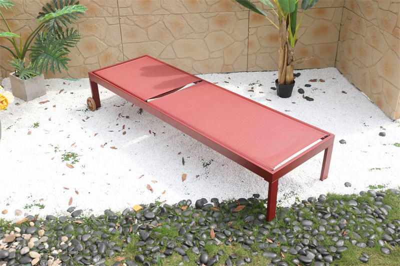 屋外アルミ合金ベッド民宿ネット赤プールリクライニングベッド露天防水日焼け止めビーチリクライニング