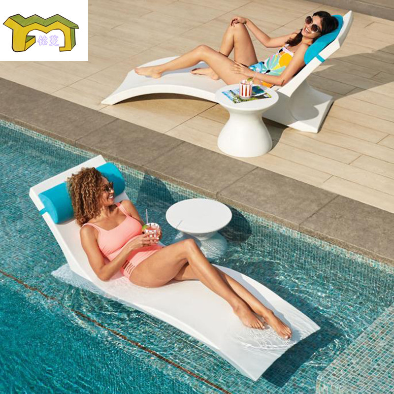 屋外ビーチチェアプールホテルクラブプラスチックベッドビーチレジャーリクライニングチェア注水水陸両用怠け者椅子