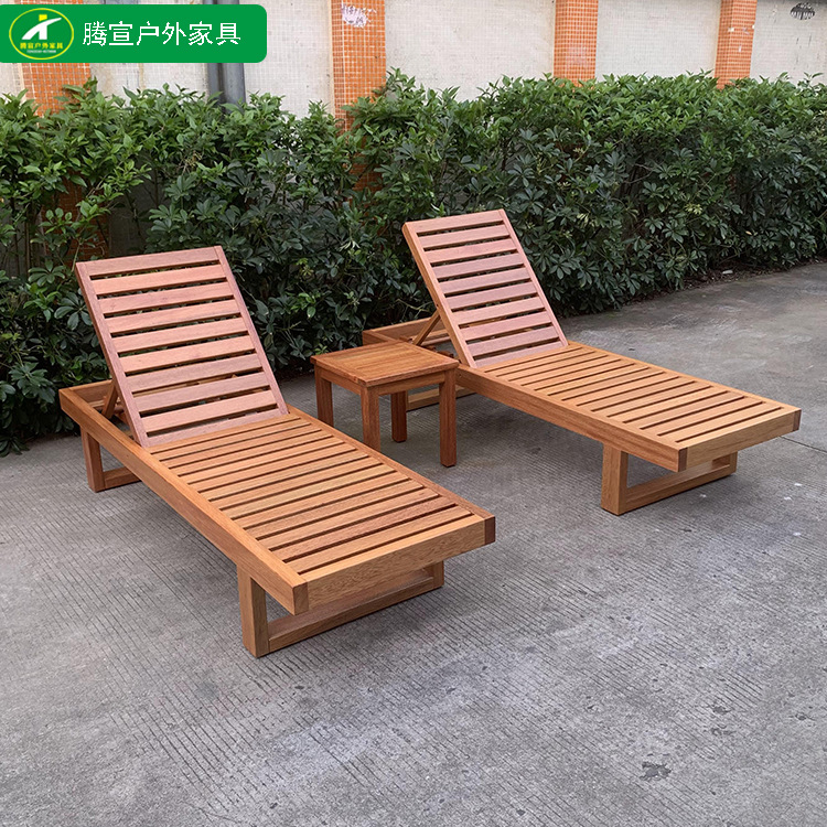 户外防腐实木沙滩椅海边木质躺床度假酒店休闲躺椅泳池单双人躺床