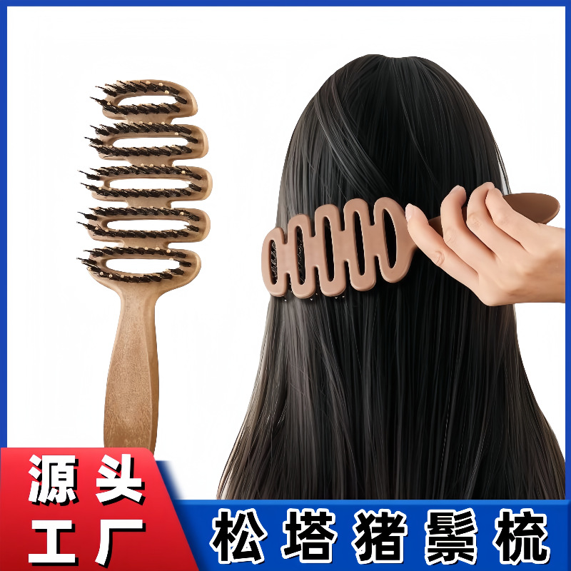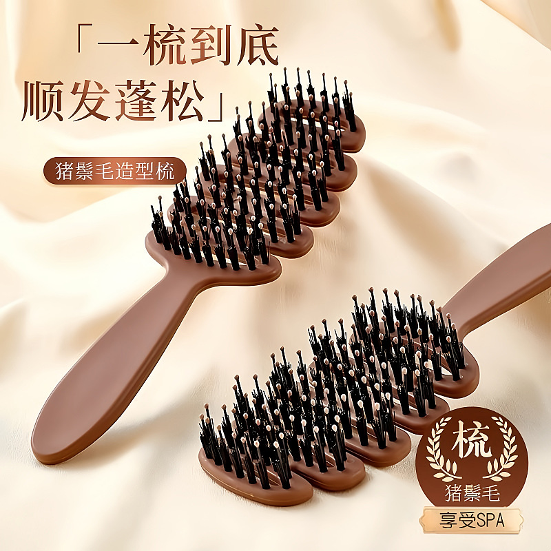 2025新款高端家用造型梳美发梳蓬松梳防静电松塔梳松塔猪鬃护发梳